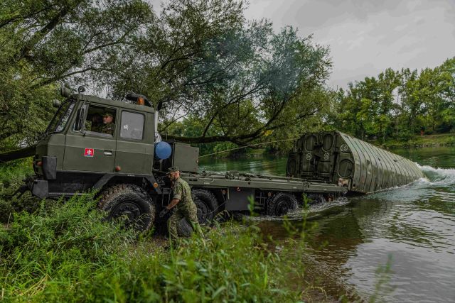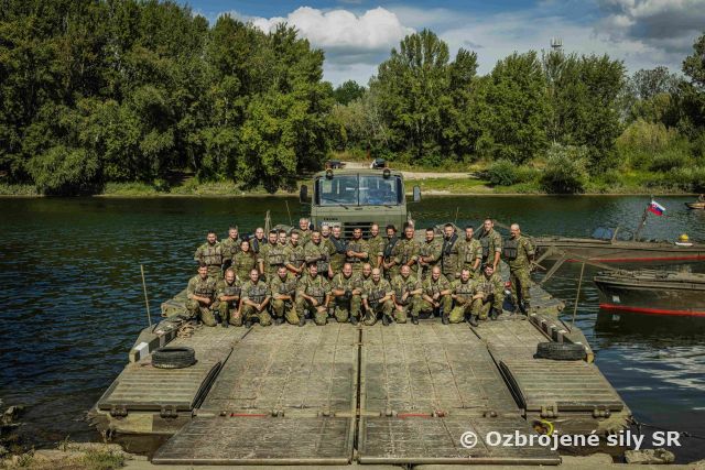 Výcvik 1. pontónovej roty a Národných obranných síl V dňoch 20.-22. augusta 2025 prebehlo trojdňové cvičenie 1. pontónovej roty v spolupráci s príslušníkmi Národných obranných síl Slovenskej republiky v priestoroch Kráľová nad Váhom. Cieľom výcviku bolo zriadenie prievozového prepraviska pomocou súpravy PMS (pontónová mostová súprava), ktorá predstavuje neoddeliteľnú súčasť ženijného zabezpečenia Ozbrojených síl SR. Výcvik prebiehal v reálnych podmienkach s dôrazom na domáci krízový manažment, pohotovosť, rýchlosť rozvinutia, zabezpečenie prepravy a spoluprácu medzi rôznymi zložkami. Príslušníci 1. pontónovej roty spolu s jednotkami Národných obranných síl precvičili kompletné nasadenie prievozového prepraviska vrátane budovania kontrolných prepúšťacích miest, koordinácie prepravy techniky a zabezpečenia ochrany priestoru. Medzi hlavné ciele výcviku patrilo rozvinutie PMS súpravy vo forme prievozového prepraviska, technické zabezpečenie prievozu vojenskej techniky, zriadenie miest pre vjazd a výjazd pre vojenskú techniku, zladenie velenia, riadenia a podpory v dynamickom prostredí. Príslušníkmi cvičiacej jednotky Národných obranných síl boli aj prezident Slovenskej republiky Peter Pellegrini a podpredseda vlády a minister obrany Robert Kaliňák. Obaja absolvovali výcvik vo funkcii vodič T-815 PMS a priamo sa zúčastnili činností spojených s budovaním a prevádzkou prievozového prepraviska.
